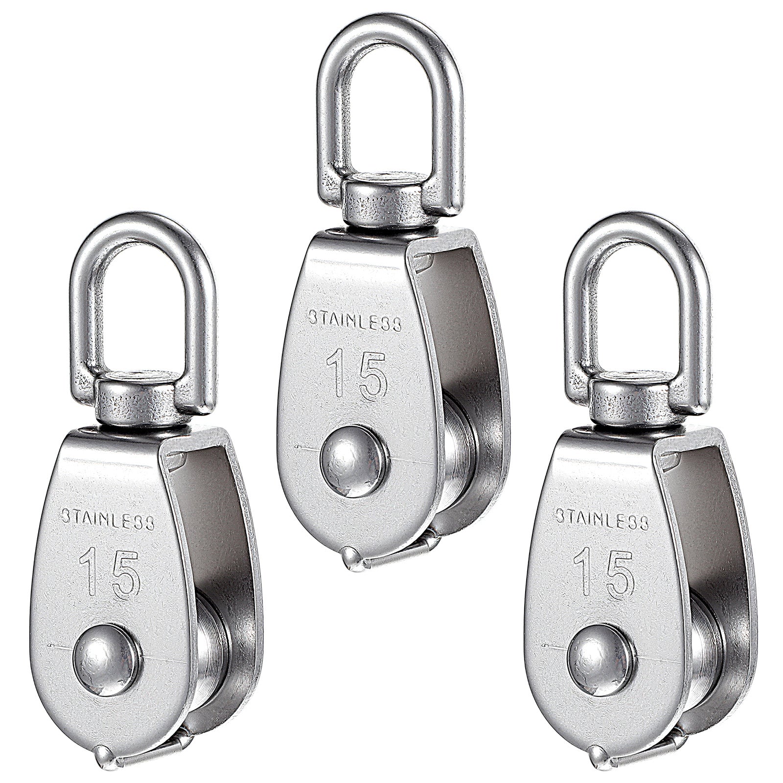 Small Pulley, 3 Pack M15 Cable Pulley, 304 Stainless Steel Pulleyblock, Pulleys for Rope, Heavy Duty Pulleys, Crane Swivel Hook, Hanging Wire Towing Wheel for Pulleysystem, Lifting, Gym Equipment