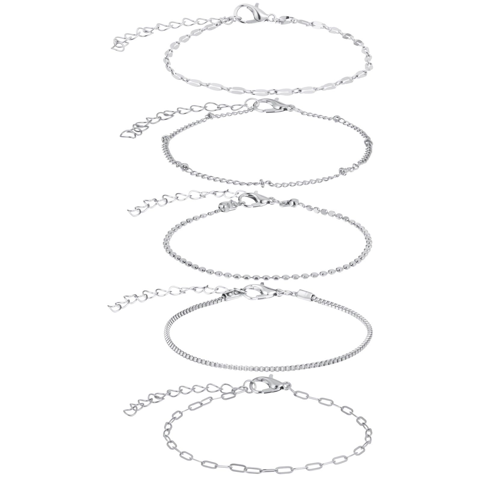 Stainless Steel Bracelets for Women, 10 Pcs Adjustble Chain Bracelet for Men Snake Twists Rope Box Beads Paperclip Cuban Link Bracelet for Men Jewelry Gifts