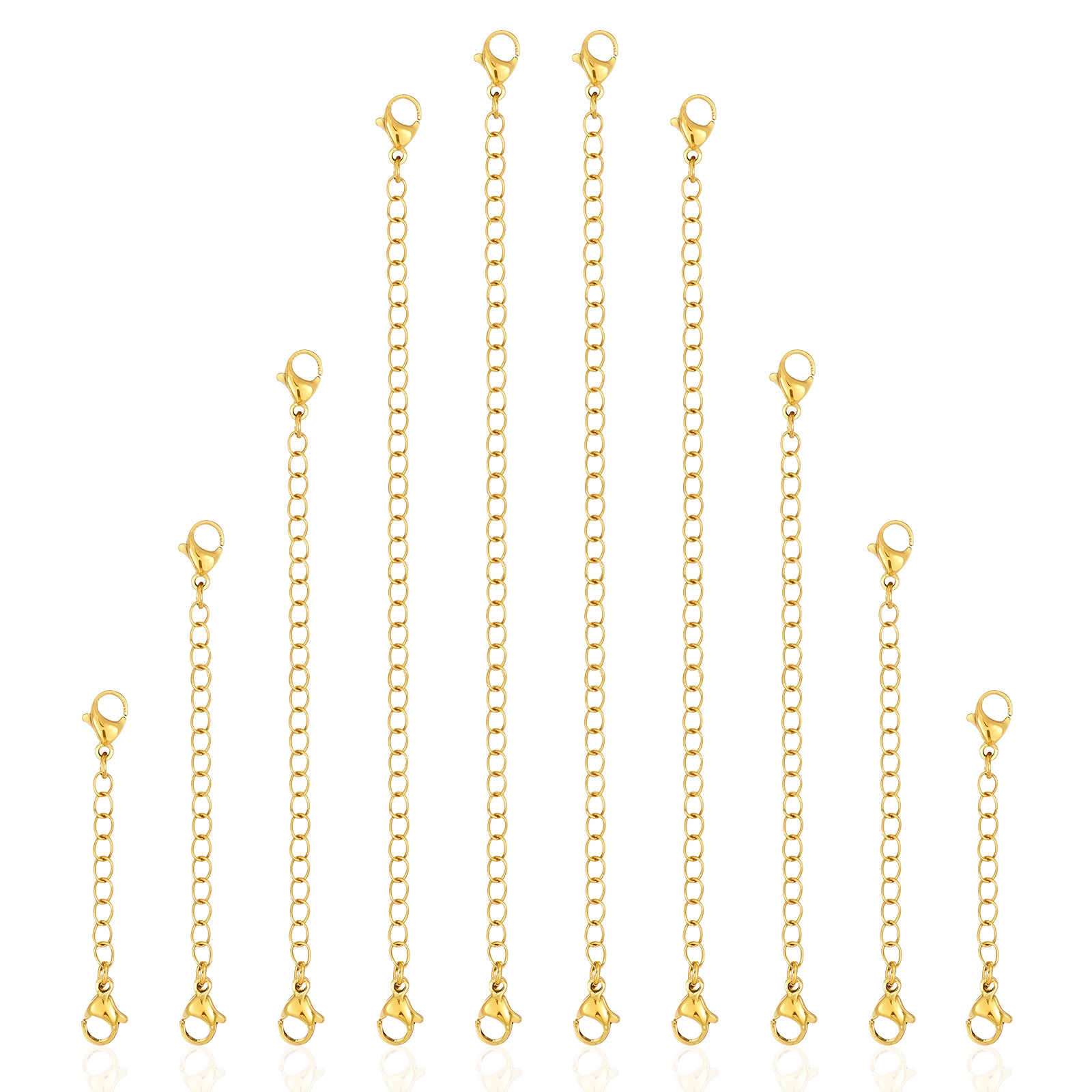 Stainless Steel Necklace Extenders, 10PCS Gold Chain Extenders for Jewelry Making, Adjustable Lobster Clasp Extender Chains for Necklaces, Bracelets, Anklets (Assorted Sizes 2-6 Inch)