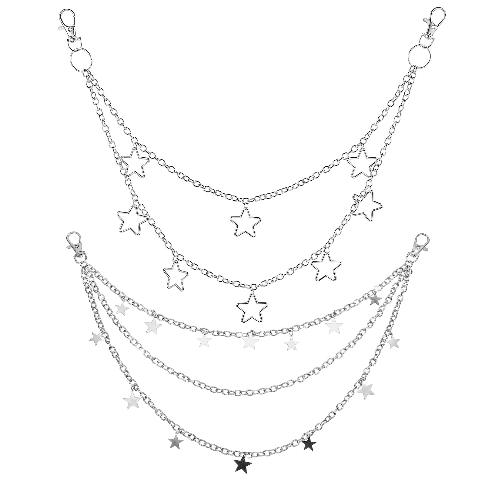 Star Belt Chain, 2 Pcs Y2k Pants Chain Multi-Layer Punk Rock Jean Chains Vintage Hip Hop Wallet Chains Waist Body Accessories for Men Women
