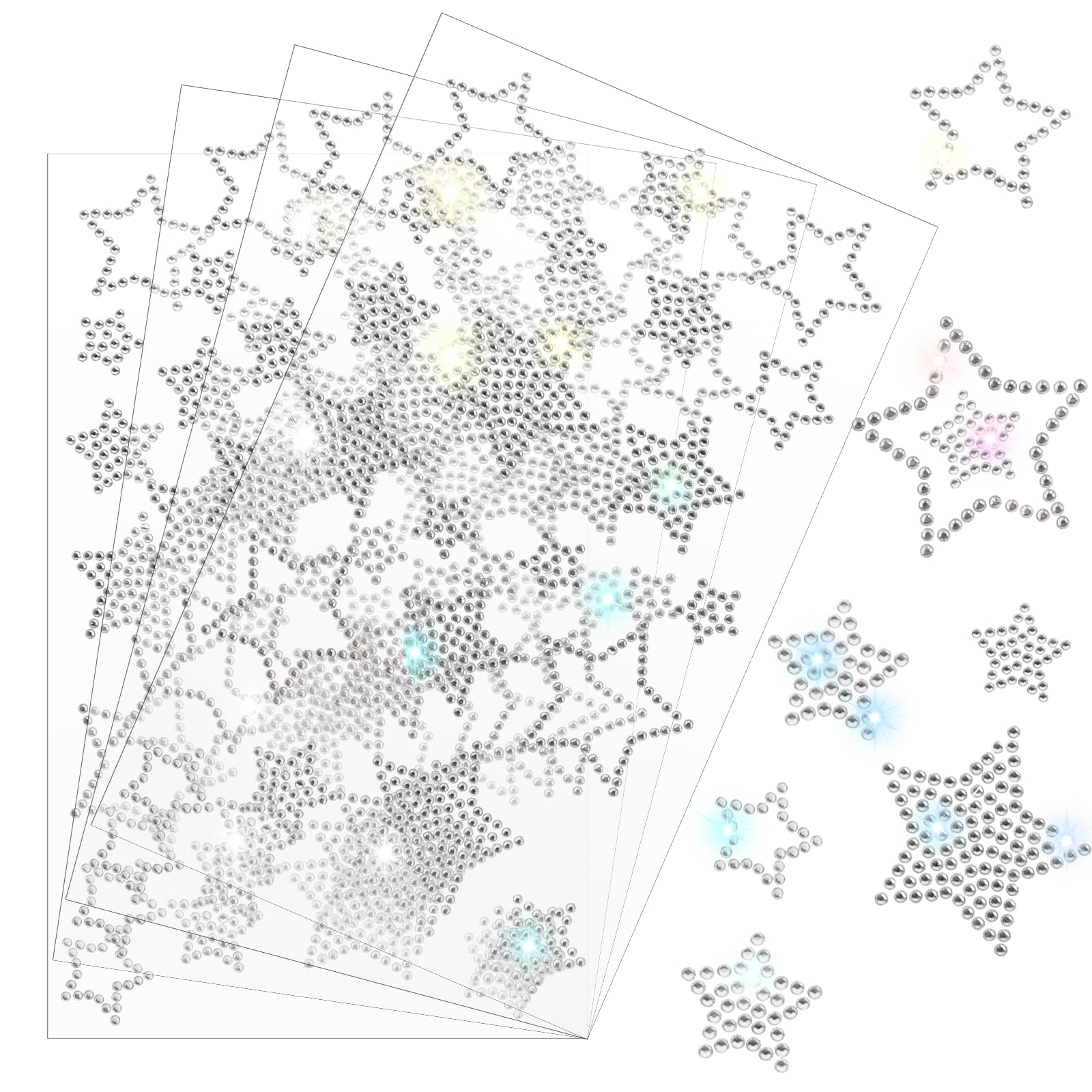 Star Stickers 7 Sizes Glitter Silver Labels Self-Adhesive Star Crystal Glitter Rhinestone Stickers for Crafts Sparkling Labels for Gift Decoration Dress Patch Furniture Scrapbooking 4 Sheets