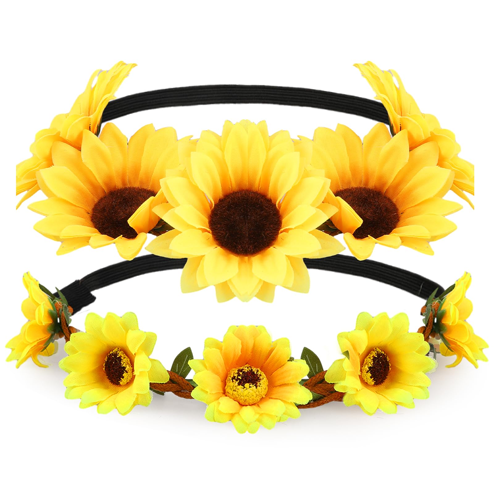 Sunflower Headband, Flower Headband, Decorative Hair Band, Sunflower Headwear, Flower Headbands, Bridal Wedding Headdress, Beach Hair Accessories for Women and Girls (Pack of 2)