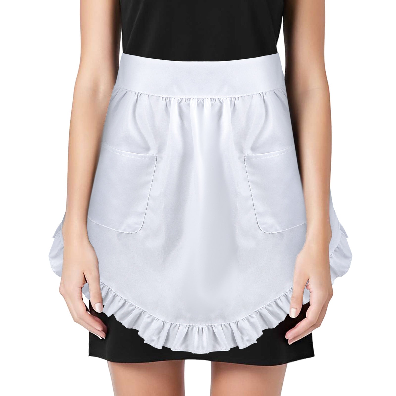 SynHHergyx Women's Waist Apron with 2 Pockets White Half Aprons for Women Ruffle Waitress Apron Vintage Skirt for Kitchen Cooking Restaurant Party