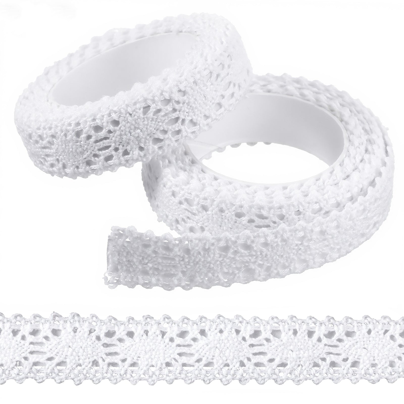 White Cotton Lace Trim, Self-Adhesive Lace Trim Sewing Crafts-Lace for Gift Wrapping Dress Decoration Wedding(1.6cm x 4Yards)