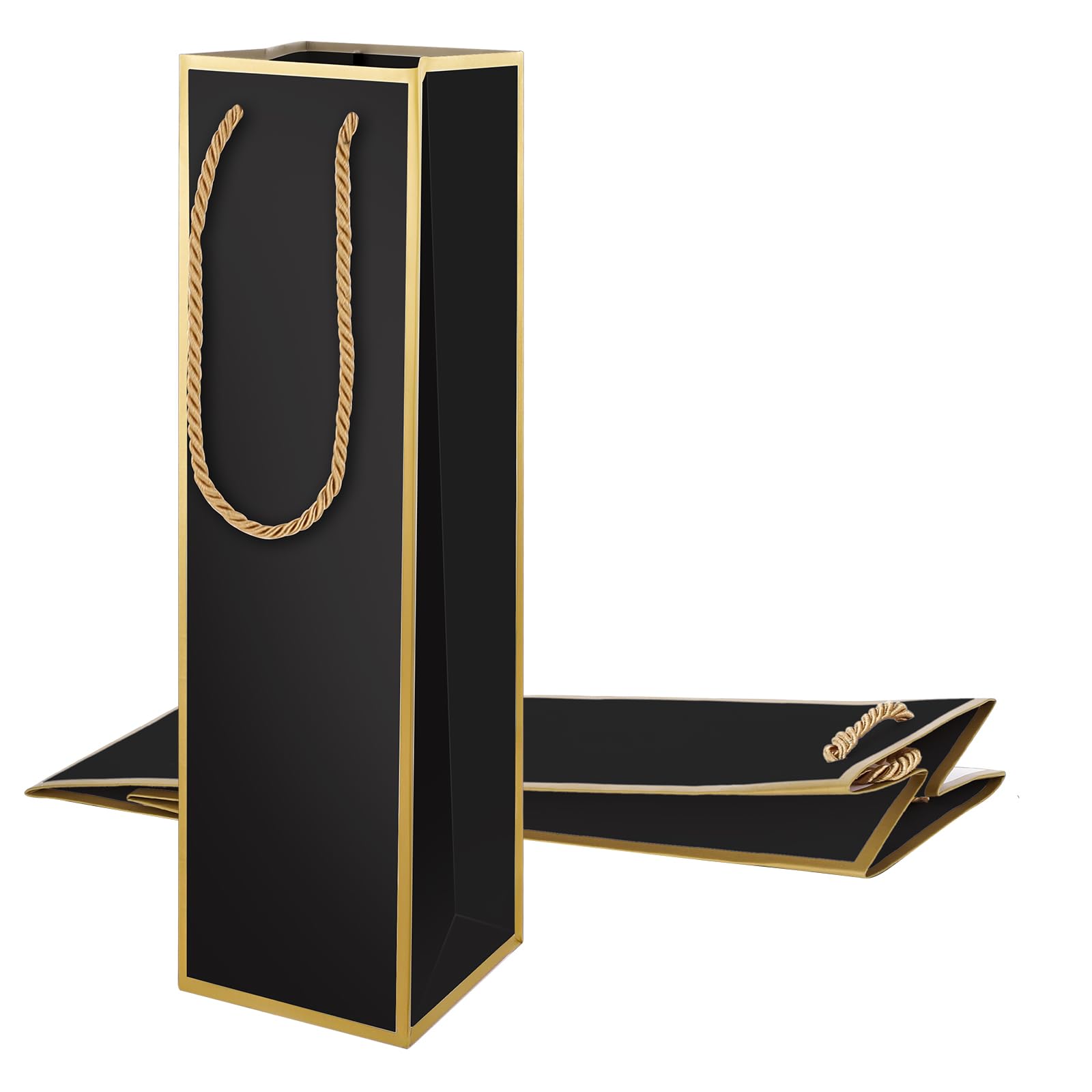 Wine Gift Bag for Wine Bottles, 2 Pcs Wine Bottles Gift Bags with Handles, 4"x4"x13.8" Strong Paper Wine Gift Bags with Handles Reusable Liquor Bags with Gold Foil Print for Party Wedding (Black)