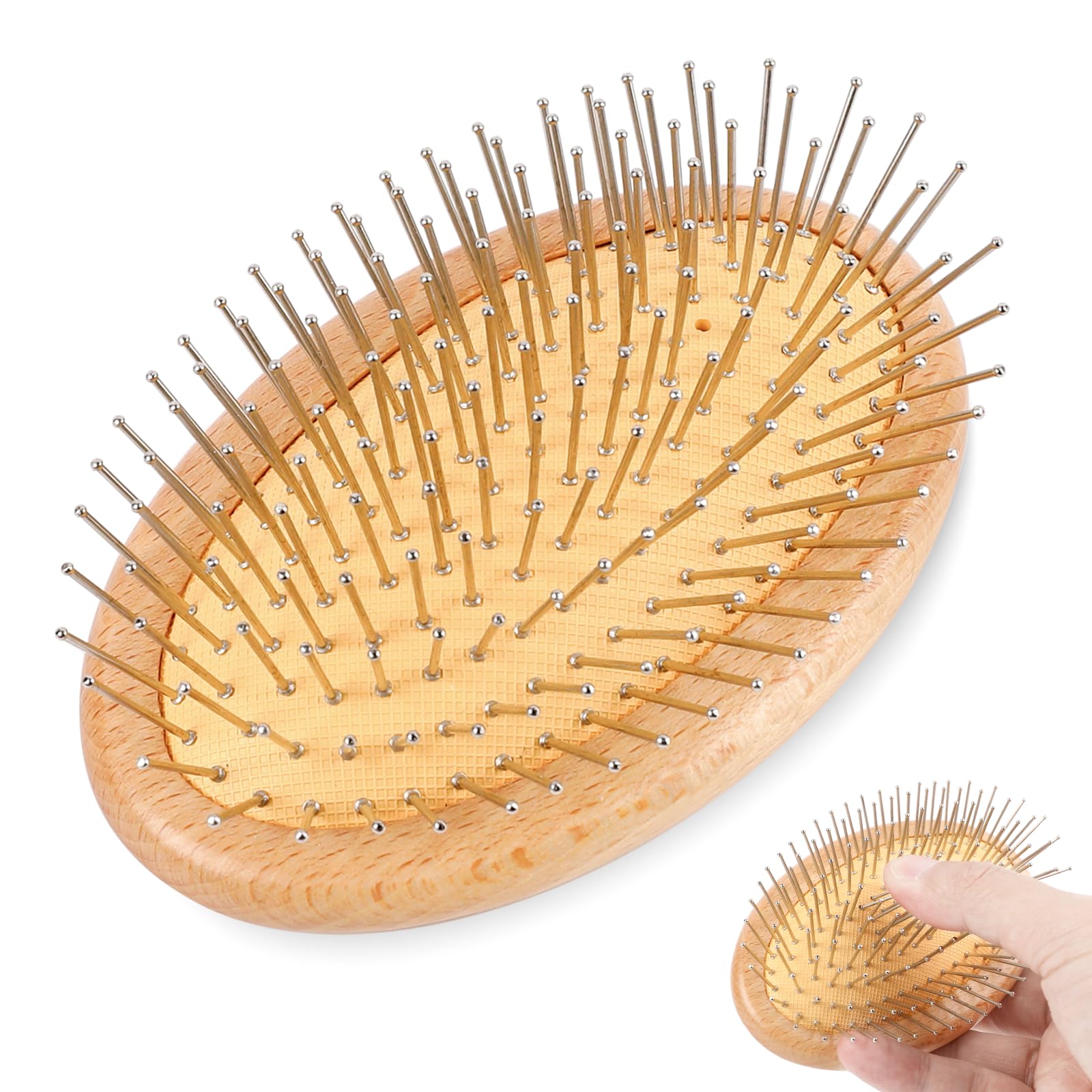Wood Colour Hair Brush, Boar Bristles Brush with Steel Needle, Antistatic Wooden Hair Brush, Massage Scalp, Portable, Without Handle, Egg-shaped Air Cushion Comb, Massage Brush, Scalp Detangler