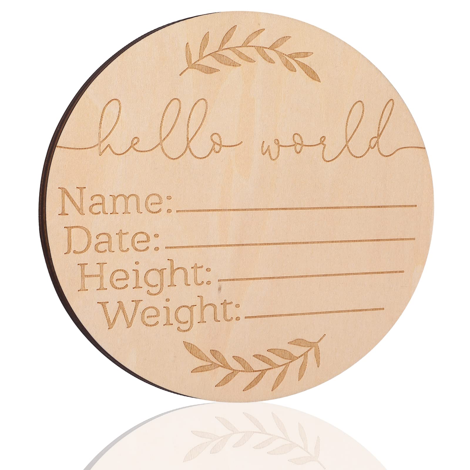Wooden Baby Announcement Sign Baby Name Information Sign Round New Baby Sign Hello World Newborn Welcome Sign for Hospital Photo Prop Baby Shower Nursery Wall Decor, 5.9 Inches