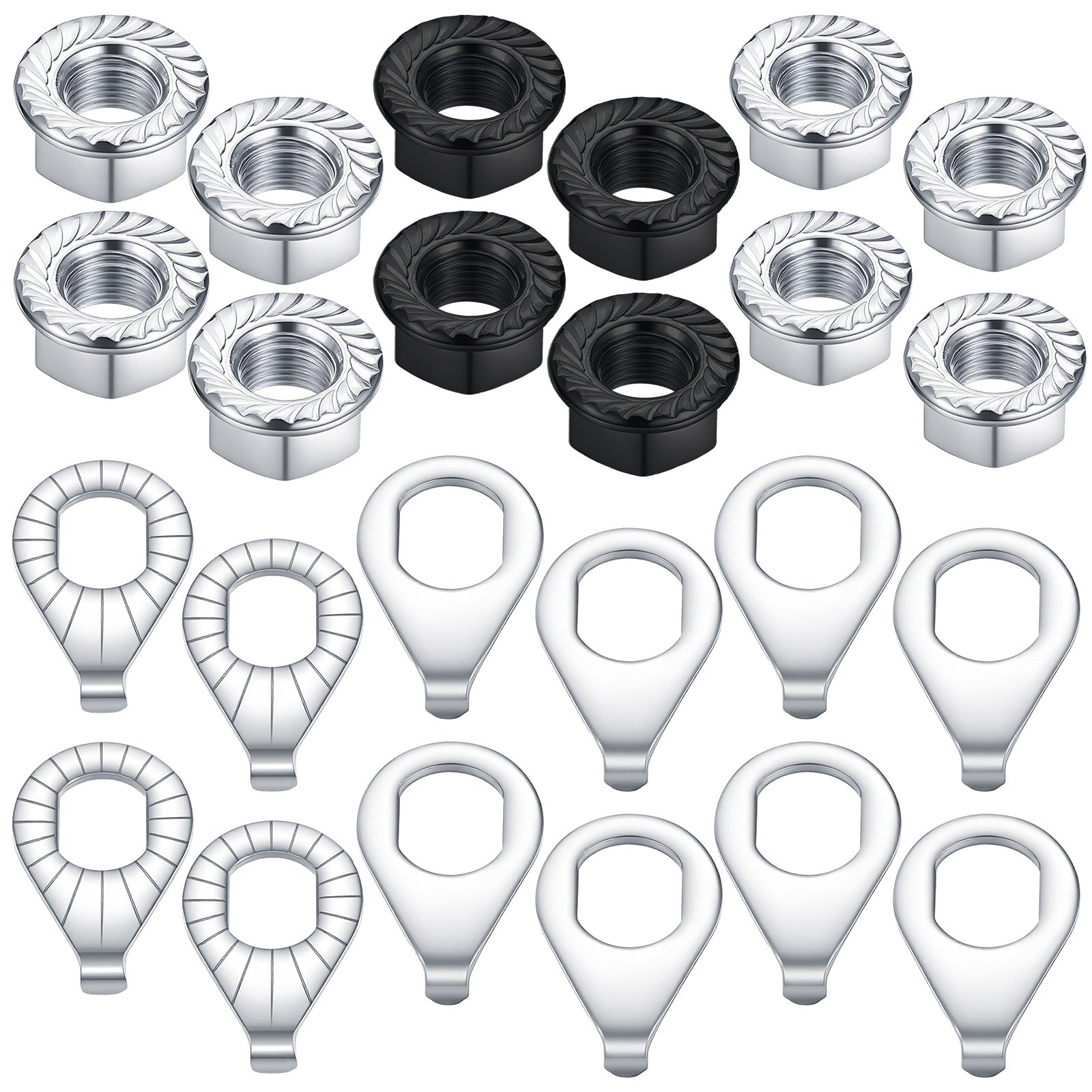 Xelsluthe 24PCS Bicycle Axle Nuts and Safety Washers, Bike Wheel Nuts Kit, M8/M9.5/M10 Bicycle Hub Flanged Axle Nut, Bike Axle Nut for City Road Mountain Bike