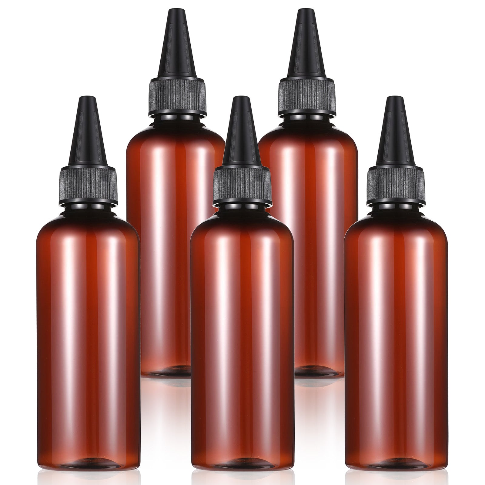 Xthrotsenk 5 Pack Hair Color Applicator Bottles for Hair, Amber Refillable Squeeze Bottles 3.5 Ounce Oil Bottles for Hair Dye Bottle with Cap, Brown Hair Oiling Bottle