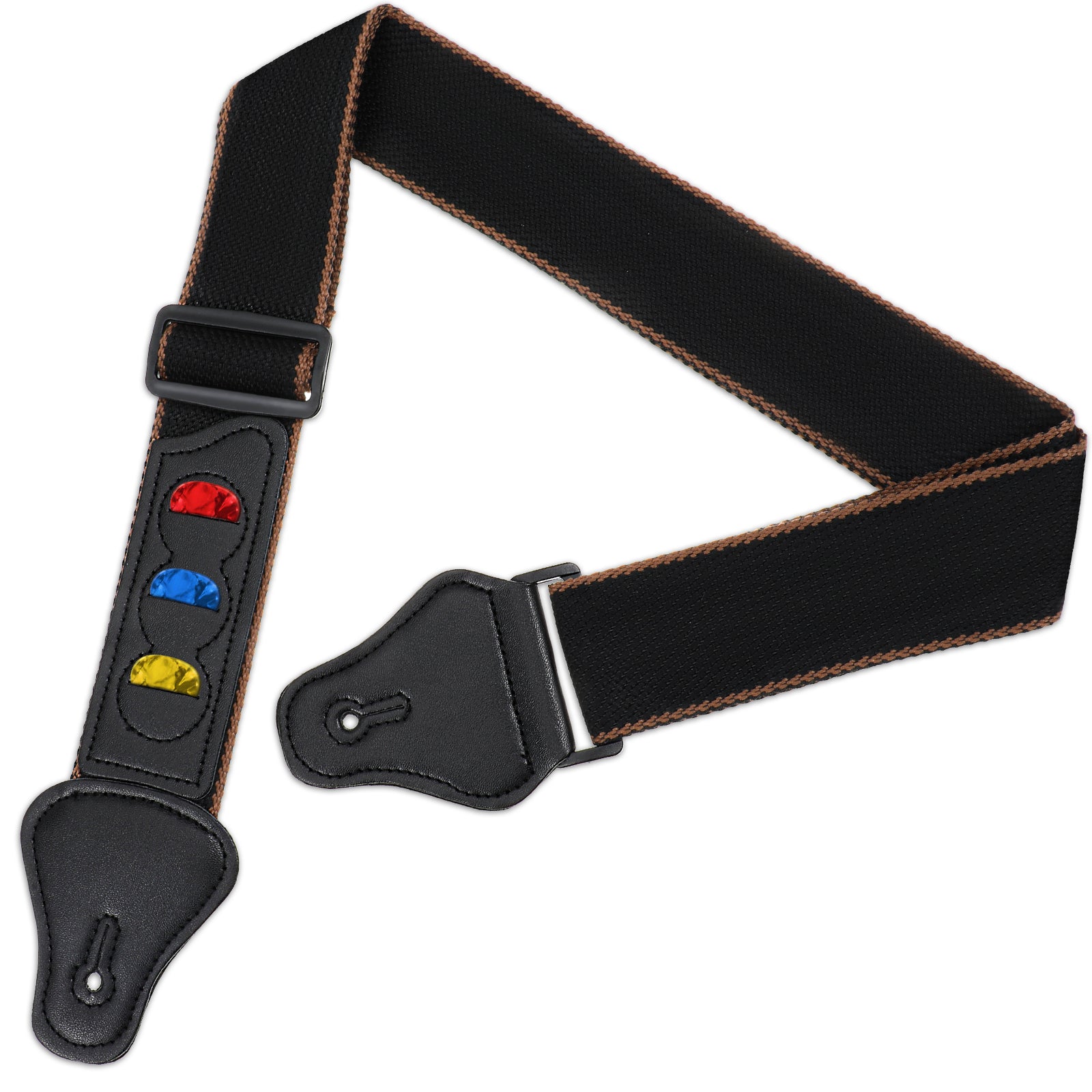 Xthrotsenk Black Guitar Strap Cotton Guitar Straps for Bass Electric Guitar Acoustic Guitar Straps Guitar with Leather Ends Strap and Pick Holder Pockets