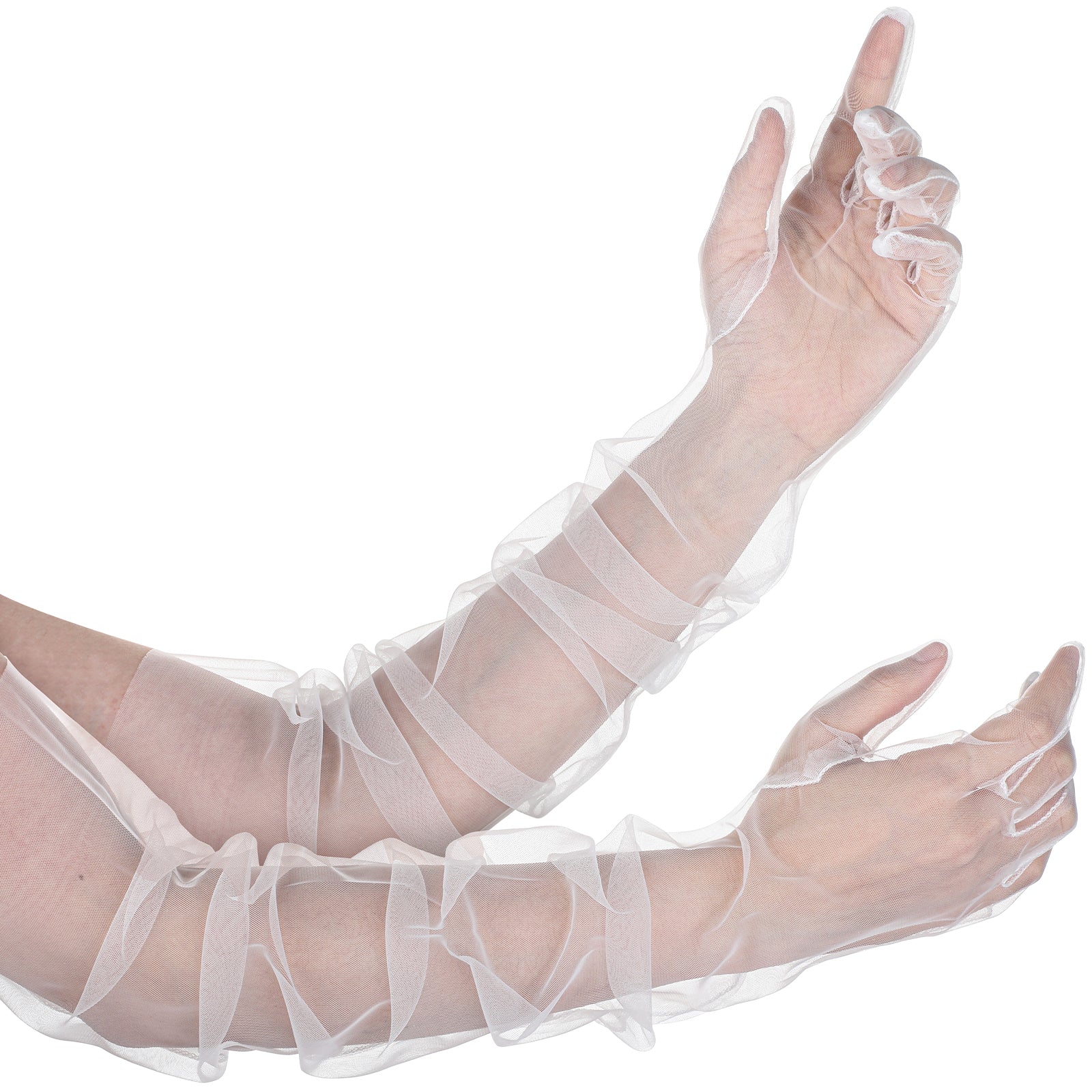 Xthrotsenk Mesh Tulle Gloves 27'' Women's Long Gloves Sheer Opera Party Gloves White Long Mesh Wedding Gloves Elbow Length Gloves for Bridal Dance Wedding Party